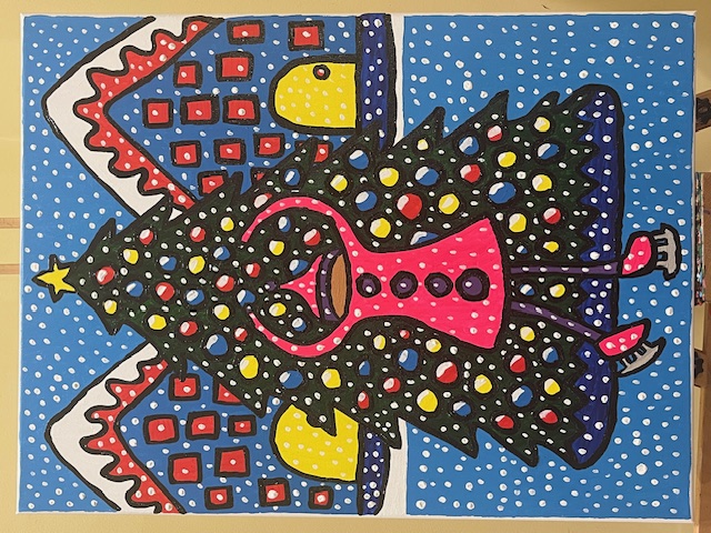 - Blue, Christmas, Christmas Tree, December Holiday, Festive, Green, Holiday, Ice Skating, Ornaments, Pink, Purple, Red, Snow, Winter Landscape, Yellow