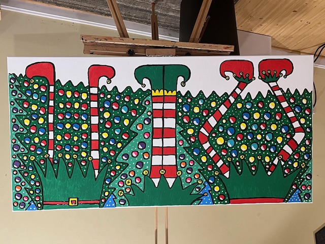 - Blue, Christmas, Christmas Tree, December Holiday, Elf, Elves, Festive, Green, Orange, Ornaments, Pink, Purple, Red, Snow, Turquoise, Winter Landscape, Yellow