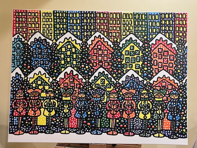 - Blue, Cakes, Candy, Candy-land, Candy-land Landscape, Christmas, Christmas Trees, Cupcakes, Festive, Frosting, Gingerbread Girls, Gingerbread Men, Green, Orange, Pink, Purple, Rainbow Colors, Snow, Sweets, Vibrant Colors, Whimsical, Winter Landscape, Yellow