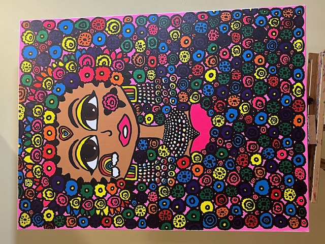 - Black Woman Art, Blue, Feminine, Floral, Floral Art, Flower Art, Flower Lady, Flowers, Green, Orange, Peonies, Petals, Pink, Purple, Rainbow Colors, Rainbow Flowers, Red, Roses, Yellow